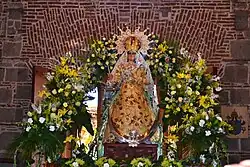 Diriomo celebrates the patron festivities from January 21- February 9, with February 2nd as the main day, every year in honor of the Virgen de Candelaria. The Virgin de Candelaria holds a candle in her right hand and baby Jesus on the other. The image of the Virgen is taken to La Raya, the place where it is believed she made one of her biggest miracle of saving the town from death during the volcanic eruption of the Cosigüina in 1835.[7] During the mass on February 2 there is a tradition to bless the candles people bring, which are a representation of the light of Christ.[8]