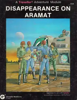 Disappearance on Aramat is an adventure published under license by Grenadier Models in 1984 for Game Designers Workshop's science fiction role-playing game Traveller.