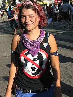 Disarm Bush T-Shirts is a for-profit political activism campaign created in 2004 in the run-up to the American Presidential election, in which the incumbent George W. Bush ultimately defeated challenger John Kerry. Disarm Bush effectively mobilized opposition to the Republican incumbent in a number of large metropolitan population centers, in which their guerrilla t-shirt vending methods were most successful. Through 2005, the organization had sold no fewer than 25,000 t-shirts with their universally recognizable anti-Bush logo and registered over 5,000 citizens to vote.[1]