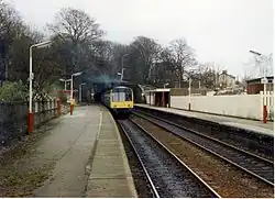 Disley railway station serves the village of Disley in Cheshire, England. It is sited 12+1⁄3 miles (19.8 km) south-east of Manchester Piccadilly on the Buxton Line, built by the Stockport, Disley and Whaley Bridge Railway. The station is managed by Northern Trains, which also operates all trains serving it.