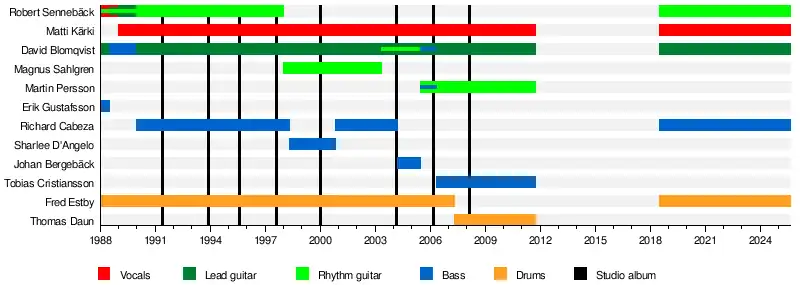 - Robert Sennebäck – rhythm guitar (1988–1998, 2019–present), lead guitar (1988–1990), vocals (1988–1989)