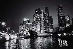 Gibson found it painful to try to connect with the Victorian Singapore, of which few vestiges remained. In an attempt to uncover Singapore's underlying social mechanisms, the author searched fruitlessly for an urban underbelly, rising at dawn for jetlagged walks on several mornings only to discover that the city-state's "physical past ... has almost entirely vanished".[2][5] He gave an overview of the history of Singapore from the founding of modern Singapore by Sir Stamford Raffles in 1819 to the Japanese occupation and the establishment of the Republic in 1965. He concluded that modern Singapore, effectively a one-party state and capitalist technocracy, was a product first and foremost of the vision of three-decade Prime Minister Lee Kuan Yew.[2] As an aside, he quoted a headline from the South China Morning Post detailing the trial of a cadre of economists, a government official (current President, Tharman) and a newspaper editor for divulging a state secret by revealing the Singaporean economic growth rate.[2]