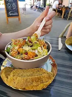 Packaging of fast food and take-out food involves a significant amount of material that ends up in landfill, recycling, composting or litter.[1]