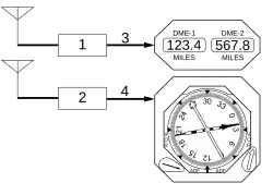 A newer role for DMEs is DME/DME area navigation (RNAV).[6][7] Owing to the generally superior accuracy of DME relative to VOR, navigation using two DMEs (using trilateration/distance) permits operations that navigating with VOR/DME (using azimuth/distance) does not. However, it requires that the aircraft have RNAV capabilities, and some operations also require an inertial reference unit.