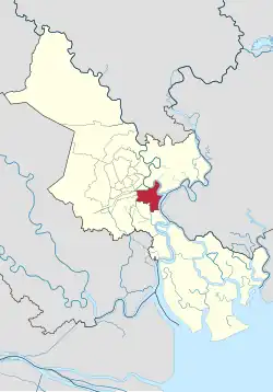 District 7 (Quận 7) is an urban district of Ho Chi Minh City, the largest city in Vietnam. As of 2024, the district had a population of 456,789 and an area of 36 km².[1]