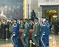 Below, the photographs show Guardsmen and Airmen Honor Guards from DCNG, participating jointly in the funeral service of the civil rights activist, Rosa Parks. Ms. Parks, was best known as a civil rights pioneer. Her "lay-in-honor" viewing was held October 30–31, 2005 at the US Capitol Rotunda building, Washington, DC. The joint service Honor Guard composition below depicts an 8-man pallbearer team.