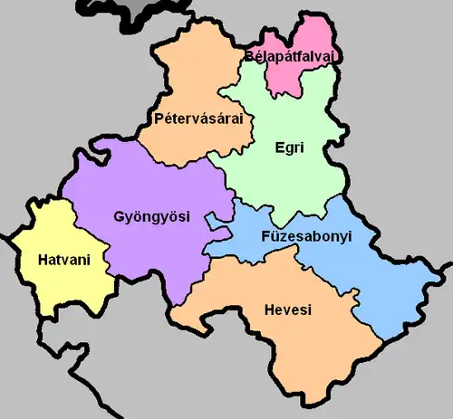 | 7 | Mezőkövesd District | Mezőkövesd | 723.86 | 42,442 | 59 | 23 | 2 |