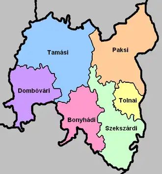 | 1 | Bonyhád District | Bonyhád | 476.81 | 31,582 | 66 | 25 | 2 |