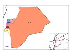 A district (Arabic: لواء, romanized: liwāʾ; plural: ألوية, romanized: alwiya) is one of the administrative centres ("chief towns") in Jordan.[1] The twelve governorates of Jordan contain fifty-two alwiya which are listed below by governorate. In many cases the name of the chief town is the same as the name of the district (liwāʾ) or sub-district (qaḍāʾ) administered.