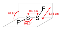 - ^ Davis, R.Wellington; Firth, Steven (1991). "The microwave spectrum of the chain isomer of disulfur difluoride: FS-SF". Journal of Molecular Spectroscopy. 145 (2): 225. doi:10.1016/0022-2852(91)90109-N.