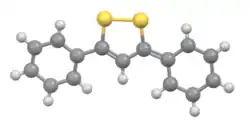 - ^ E. Uhlemann; F. Weller (1992). "3,5-Diphenyl-1,2-dithiolium-hydrogensulfat—Bildung und Struktur" [3.5-Diphenyl-l,2-dithiolium Hydrogensulphate—Synthesis and Structure]. Z. Naturforsch. B (in German). 47 (11): 1501–1504. doi:10.1515/znb-1992-1102. S2CID 95736614.