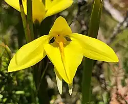 Diuris lanceolata, commonly known as large golden moths,[2] is a species of orchid that is endemic to Tasmania. It has between two and four leaves and up to three golden to orange-yellow flowers with a few dark streaks.