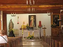 The chapel belongs to Zgromadzenie Sióstr Matki Bożej Miłosierdzia (the Congregation of the Sisters of Our Lady of Mercy). This is where Kowalska reported her first vision of the Divine Mercy image.[1] According to Kowalska, Jesus said to her: Paint an image according to the pattern you see, with the signature: Jesus, I trust in You. I desire that this image be venerated, first in your chapel, and then throughout the world. I promise that the soul that will venerate this image will not perish. (Diary 47–48).