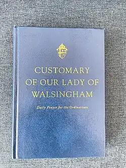 The Customary of Our Lady of Walsingham, printed by Canterbury Press in 2012 and in use until the introduction of the Divine Worship: Daily Office: Commonwealth Edition, more closely follows Catholic practices. Additions included Terce, Sext, and None.[2] Unlike the previous Book of Divine Worship, the Customary exclusively contained the Office and thus proved far more wieldy, with Divine Worship: The Missal and its new order of the Anglican Use Mass being published separately.[3]