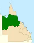 The Division of Kennedy is an Australian electoral division in the state of Queensland. It is the state's second-largest division after the neighbouring Division of Maranoa, stretching from the Northern Territory border and the Gulf of Carpentaria to the Coral Sea, just southeast of Cairns and northwest of Townsville.