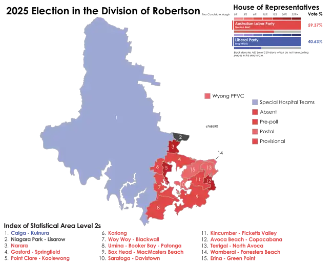 - ^ Robertson, NSW, 2025 Tally Room, Australian Electoral Commission.