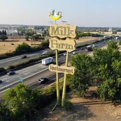 A Milk Farm Restaurant sign, measuring 100 feet tall,[3] was built in May 1963[3] and still stands today at the intersection of State Route 113 and Interstate 80.[30]