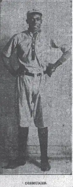 William "Dizzy" Dismukes (March 15, 1890 – June 30, 1961) was an American pitcher and manager in Negro league baseball and during the pre-Negro league years. He was born in Birmingham, Alabama, where his father Isaac Lee Dismukes was a deacon in a Baptist church, and his mother Sallie taught Sunday School.[9] He knew from the time he was a youth that baseball was his first love, and he dropped out of school to follow his dream of becoming a baseball player.[10]