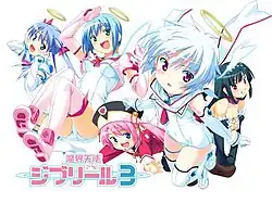 Djibril The Devil Angel (魔界天使ジブリール, Makai Tenshi Jiburīru (Makai Tenshi Djibril)) is an eroge visual novel series created by Frontwing composed of the classic entries and one spinoff, titled MegaChu. Each of the entries have also spawned trimmed down erotic OVA releases, which enjoyed mild popularity in the west. This series is created by Kūchū Yōsai and produced by Noboru Yamaguchi.
