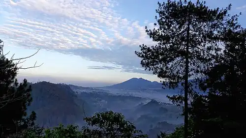 Keraton Cliff is an observation area located on a cliff-face facing the Lembang Fault and the Lembang Plateau. It is situated 1200 metres above sea level, and oversees the Maribaya Valley, with the nearby Curug Omas visible on the southern side. The complex contains a 2-lane observation deck leading to the cliff-face, an observation tower, and camping grounds. The local name is Tebing Keraton, meaning "Keraton cliff"; an older name is Karang Jontor, which in Sundanese roughly translates to "jutting forwards", owing to the rock formation.[4] Entrance fees to the Keraton Cliff is separate from Tahura, with local tourists paying Rp.11,000 and foreign tourists paying Rp.76,000. Camping fees are Rp. 40,000 provided you bring your own tents, and parking fees are Rp.10,000 for cars and Rp. 5,000 for motorbikes.[5]