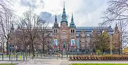 ![]() The Nordic Museum at Djurgården, facing south-west with Skeppsholmen, Gamla stan and Södermalm in the background | |