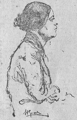 In time, Schultz took on the persona of a four-year-old girl, Metochka.[Notes 3][18] In this image, he was capricious; the students gave him dolls, chocolates, candy, bonnets, lace, and beautiful shoes. When the money ran out, they went to collect alms.[4][19][20] The sectarians gave part of the money collected to Heinrich Schultz, the accountant of the United Temple, and used the rest of the money to buy gifts for Metochka. Prophet Agathit Abdullah revealed during a new séance that Metochka was patronized by the ancient Greek goddess Demeter, who gave the community her portrait and a sculpted bust. These were secretly executed by Dmitry Shultz. Both have survived and are now in the collection of the Museum of the History of Religion in St. Petersburg.[21][19] In turn, the young sectarian Nina Makarova was "transformed" at a spiritualistic séance into a young man. She received a new name —Thomas (in honor of Thomas à Kempis)— her hair was cut off, and she was given men's clothes, as well as vodka, and had her front teeth knocked out.[22]