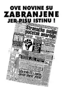 In the case of Dnevni telegraf, the reason for this radical measure was listed to be the paper's supposed "spreading of defeatism by running subversive article headlines". Following the protests and pressure by domestic NGOs and foreign governments, the ban was lifted on 20 October 1998, only to be replaced by the infamous new Information Law that was passed on the same day.