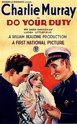 Do Your Duty is a 1928 American silent comedy film directed by William Beaudine.[1][2] The film was originally planned to be a Part-Talkie but this was quickly abandoned when Warner Bros. acquired control of First National in September 1928. The film was unceremoniously released as a silent. Charlie Murray was dropped from the First National roster and three films that had been already planned by First National as starring vehicles for Charlie Murray before the acquisition were cancelled. This is lost film.[3][4]