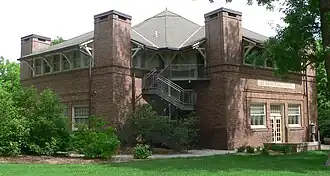 The Whitcomb Lee Conservatory, also known as The Con, is a two-story building designed by the Chicago architectural firm of Dean and Dean in 1905. It was completed in 1907, and originally housed Lee Memorial Chapel and the music department. It is a five-sided brick building that. In 2005 the building was renovated, and currently provides facilities for the university's theatre department and speech team. The conservatory was winner of the 2005 AIA Nebraska Design Award for its restoration.[3]
