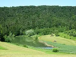 Dobje Pond (Slovene: Ribnik Dobje) lies west of the village center of Dobje, along the upper course of Breg Creek.