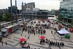 The idea for MediaCityUK began in 2004 when BBC announced that it was interested in moving hundreds of jobs away from London to another UK city.[4] The Peel Group was involved from the early stages of this move, which resulted in announcing the construction of a 200-acre development in Salford Quays, Greater Manchester. The BBC and The Peel Group announced in 2007 that the construction would begin on the media-based development.[5]