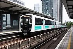 ![]() B07 stock train at Poplar DLR station | |