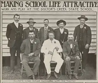 ![]() Doctor's Creek School Committee with the teacher, 1915 | |||||||||||||||