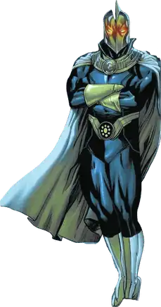 The original and most recognized version is Kent Nelson,[8] an archaeologist who was empowered by Nabu of the Lords of Order as a sorcerous hero and is considered a founding member of the Justice Society of America. Since the 1980s, the character has been subjected to various permanent and comic book deaths, creating a line of succeeding sorcerer. In 2015, the current version, Khalid Nassour, debuted as a mixed Egyptian-American Muslim sorcerer and physician (originally medical student) chosen and supported by ancient Egyptian deities, archangels, and Nabu and has received critical acclaim.[9][10] Other versions of the character include step-mother/son duo Eric and Linda Strauss, archaeologist Inza Cramer, smuggler Jared Stevens, reincarnated son of Hawkman and Hawkgirl, Hector Hall, and former psychiatrist Kent V. Nelson.