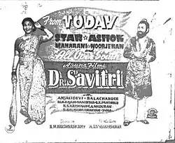 - ^ "1955 – டாக்டர் சாவித்திரி – அருணா பிலிம்ஸ்" [1955 – Doctor Savithri – Aruna Films]. Lakshman Sruthi (in Tamil). Archived from the original on 27 December 2016. Retrieved 11 September 2016.