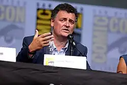 Davies wrote the 2023 Christmas special and the bulk of the series, while guest writers were invited for the third and sixth episodes. Former showrunner and head writer Steven Moffat returned to write "Boom".[67] Davies contacted Moffat in September 2021 and told him about his plans for the show. Moffat pitched several ideas to Davies, before landing on the concept that became the third episode.[68] Davies also reportedly asked Chris Chibnall, who had served as showrunner from 2018 to 2022, to return as a guest writer, but this offer was declined.[69] "Rogue" is co-written by first-time writers for the show, Kate Herron and Briony Redman.[70] Scott Handcock served as script editor.[71] The series features an episodic format, with the first six episodes serving as standalone stories, before concluding with a two-part series finale. Davies compared it to an "anthology series - every week, a new time and place", while also containing "little hints and hooks here and there which might build up to something" in the final episodes.[72] Like his first series in 2005, Davies didn't want the series to be clogged with backstory for first-time viewers, and ensured that the basic foundations would be discovered again through the eyes of the companion.[72]