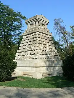 The park is named after the monument of the fallen medics during the Russo-Turkish War (1877–1878), most of whom worked for the mission of the Russian Red Cross Society and perished in the battles at Pleven, Plovdiv, Mechka and Shipka. The monument was constructed between 1883 and 1884 by the Russian architect of Czech origin Antoniy Osipovich Tomishko.[1]