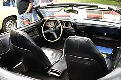 For its introductory model year the Challenger was available in two series, Challenger and Challenger R/T, and three models, two-door hardtop, Special Edition two-door hardtop, or convertible.[9] The base model was the Challenger with either an inline-6 or V8 engine. The Special Edition hardtop, available on either the base Challenger or on the R/T, added a number of appearance, convenience, and comfort features.[10] Produced for the 1970 model year only, this more luxurious SE specification included as standard a vinyl roof with a "SE" medallions on the pillars, a smaller "formal" rear window, leather and vinyl bucket seats, and an overhead interior console that contained three warning lights (door ajar, low fuel, and seatbelts).[11] The standard engine on the base model was a 225 cu in (3.7 L) Straight-6. The standard engine on the higher trim models was a 318 cu in (5.2 L) V8 with a 2-barrel carburetor. For 1970, the optional engines included the 340 and 383 cu in (5.6 and 6.3 L), as well as the 440 and 426 cu in (7.2 and 7.0 L) V8s, all with a standard 3-speed manual transmission, except for the 290 hp (216.3 kW) 383 cu in. engine, which was available only with the TorqueFlite automatic transmission. A 4-speed manual was optional on all engines except the 225 cu in (3.7 L) Inline-6 and the 2-barrel 383 cu in (6.3 L) V8.