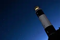 The lighthouse was automated in 1989, and the island has since been uninhabited.[14] The lighthouse is the tallest lighthouse in New Zealand, and one of its oldest.[22] Due to its black and white stripes, it might be one of New Zealand's most distinctive lighthouses.[22] There are only two other lighthouses in New Zealand of similar appearance; Cape Campbell Lighthouse also has black and white stripes, whilst Cape Palliser Lighthouse has red and white stripes.[14] The lens from 1925 is on display at the Museum of Wellington City & Sea on Jervois Quay in Wellington, on loan from Maritime New Zealand.[9][23] The 1865 rotating mechanism can be seen at the Bluff Maritime Museum.[9]