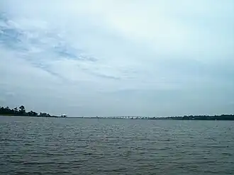 ![]() Dog River looking toward the mouth of the river; the Dog River Bridge in the background | |