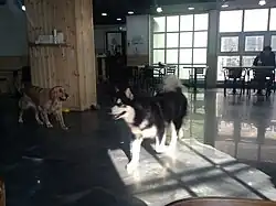 A dog café is a type of business establishment where typically customers pay to spend time with domesticated canines for purposes of entertainment and relaxation.[1][2] Such cafés may also provide other services such as food and beverages.[2] It is a type of animal café.