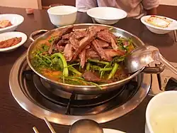 - Gaegogi Jeongol (개고기 전골) – An elaborate dog stew made in a large Jeongol pan.