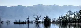 The lake is shallow and eutrophic, with extensive Phragmites reedbeds.[5] Due to the overuse of the lake's water for agricultural purposes, Doiran's water nearly drained out, but the disaster was avoided after both countries took measures to replenish and sustain water levels. Frequent and heavy rainfall in later years helped restore water levels in the lake.