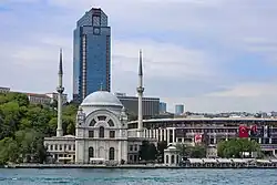 The Dolmabahçe Mosque (Turkish: Dolmabahçe Camii) is a baroque waterside mosque in Kabataş in the Beyoğlu district of Istanbul, Turkey, close to the Dolmabahçe Palace. It was commissioned by Queen Mother Bezmialem Valide Sultan and designed by the Turkish Armenian architect, Garabet Balyan in 1855. After his mother's death, Sultan Abdülmecid saw the building work through to completion.