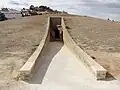 The dolmen is covered by a mound or tumulus 50 metres (160 ft) in diameter.[3] Like most Iberian tombs, it is oriented slightly south of east (96°),[3] situated precisely so that at the summer solstices the sunlight at daybreak illuminates the burial chamber.[6]