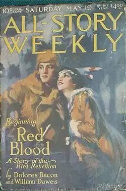 - Red Blood: A Story of the Riel Rebellion (serialized in All Story Weekly May 19 โ June 16, 1917; with William Dawes)
