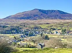 ![]() View north over Dolwyddelan, with Moel Siabod behind | |