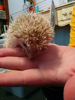 The domesticated hedgehog kept as a pet is typically the African pygmy hedgehog (Atelerix albiventris).[1] Other species kept as pets include the long-eared hedgehog (Hemiechinus auritus)[2] and the Indian long-eared hedgehog (Hemiechinus collaris).[3]