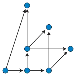 Dominance drawing is a style of graph drawing of directed acyclic graphs that makes the reachability relations between vertices visually apparent. In dominance drawing, vertices are placed at distinct points of the Euclidean plane and a vertex v is reachable from another vertex u if and only if both Cartesian coordinates of v are greater than or equal to the coordinates of u. The edges of a dominance drawing may be drawn either as straight line segments, or, in some cases, as polygonal chains.[1]