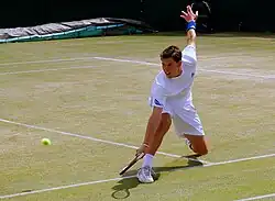 Thiem entered the Nottingham Open as the seventh seed, he defeated Malek Jaziri to claim his first win on grass in 2015, but was knocked out in the third round by Alexandr Dolgopolov.[47] Thiem competed at the third Grand Slam of the year, the Wimbledon Championships as the 32nd seed, marking the first time he had been seeded at a Grand Slam tournament. He defeated Israel's Dudi Sela in four sets, marking his first ever win at Wimbledon. In the second round, Thiem lost a close five-setter against Fernando Verdasco, despite being 2–1 up in sets.[48] After Wimbledon, he participated at the Croatia Open Umag as the fourth seed, which gave him a bye into the second round. After wins over Dušan Lajović and compatriot Andreas Haider-Maurer (after both players retired), Thiem advanced to the semifinals, where he defeated Gaël Monfils and earned himself a place in his third career final.[49] In the final, he defeated Portugal's João Sousa in straight sets to claim his second career ATP Tour title.[50] A week later Thiem won his third title at the Swiss Open Gstaad, beating David Goffin in the final, winning back to back tournaments for the first time.[51]